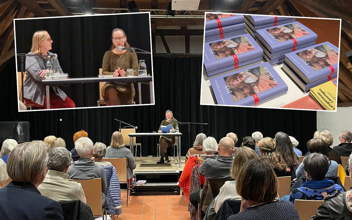 Ja, die Veranstaltung mit Yvonne Zitzmann, war ein Abend, der unter die Haut ging. Die beiden Erzählstränge, einmal in den 1970er Jahren in der DDR und zum anderen in den 2020er Jahren im Westen bringen uns die Lebensgeschichten zweier Frauen, die plötzlich alleinerziehend vor großen Existenzproblemen stehen, eindringlich näher. Wie sagte die Autorin: „Die Frauen befinden sich in einer Situation, die man sich nicht vorstellen will“. Und doch habe es sie gereizt, sich in diese Umstände einzufühlen, um die Mütter zu verstehen, aber auch, um der Frage nach der Schuld näher zu kommen. Der Titel des Buches ist „Geteilte Schuld“ - kann man Schuld teilen? Ein Abend, der wieder gezeigt hat, wie greifbar Literatur werden kann, wenn, man wie in diesem Fall spürt, dass die Autorin immer noch emotional mitten im Text steht.