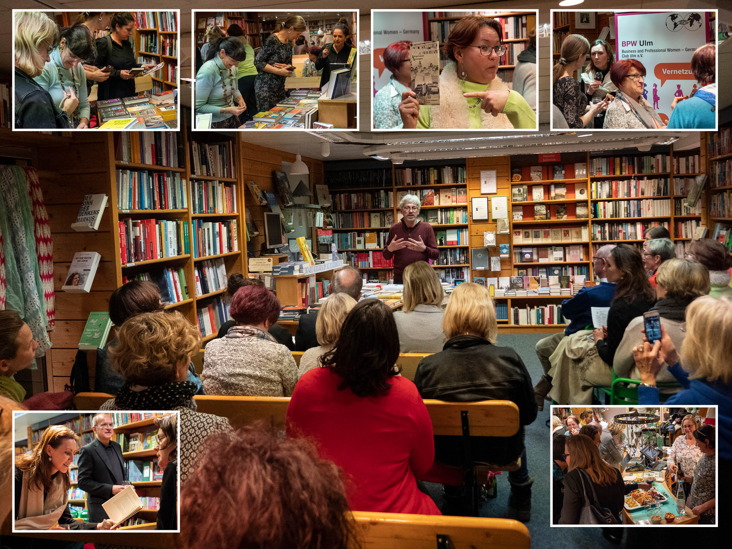 Zu ihrem Neujahrsempfang waren am Freitag, 1. Februar die Frauen von BPW-Ulm zu Gast in unserer Buchhandlung. Ein wenig Respekt hatte ich schon vor den Business and Professional Women, die sich bei uns zu Rotwein und Häppchen einfanden. Doch mein Vortrag über reisende Frauen im 19. und frühen 20. Jahrhundert kam gut an, ebenso wie die Vorstellung einer Auswahl an neuen Romanen deutschsprachiger Autorinnen. Es war ein gelungener Abend mit interessiertem und neugierigem Publikum und anschließend anregenden Gesprächen.