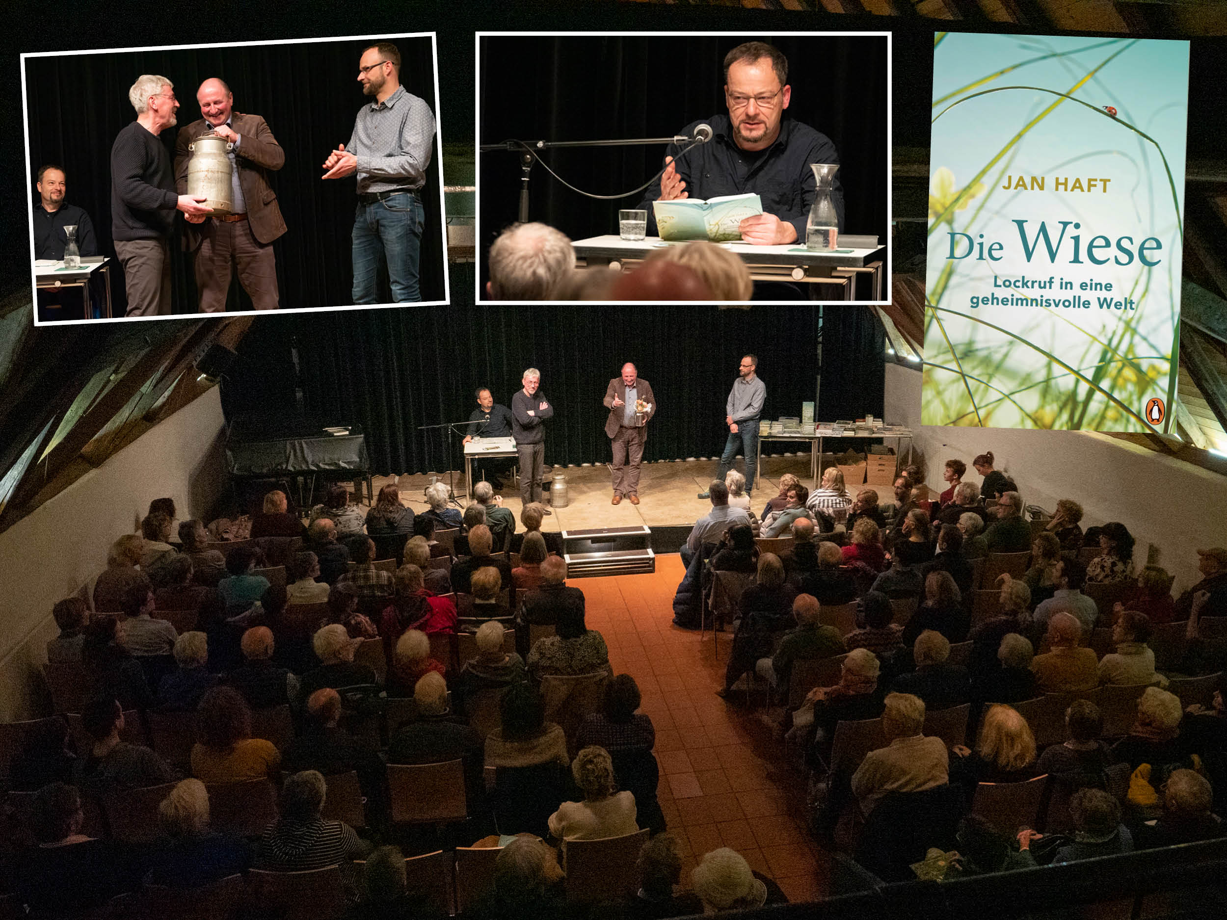 Kaum ein Lebensraum in unserem Land bietet mehr biologische Vielfalt als eine Wiese. Für die Älteren von uns ist dies mit vielen Erinnerungen verbunden. All die abenteuerlichen Entdeckungen oder der Blumenstrauß, den man aus den blühenden Wiesen der Mutter gebracht hat. Und heute: nur noch klägliche 2 % der Fläche unseres Landes sind mit Wiesen bedeckt. Wieviel wertvolles Leben in solch einem ökologischen Kleinod steckt, erklärt uns Jan Haft in seinem Buch, das zu einer Forschungsreise in ein wahres Naturparadies einlädt. Wir haben sein Buch als Aufforderung verstanden, uns für die Wiese einzusetzen. Bis zu seinem Auftritt in Langenau wird es uns gemeinsam mit Ihnen gelingen 3.000 Euro Spenden zu sammeln, sodass im kommenden Jahr zwischen Albeck und Hörvelsingen eine neue blühende Wiese entstehen kann.