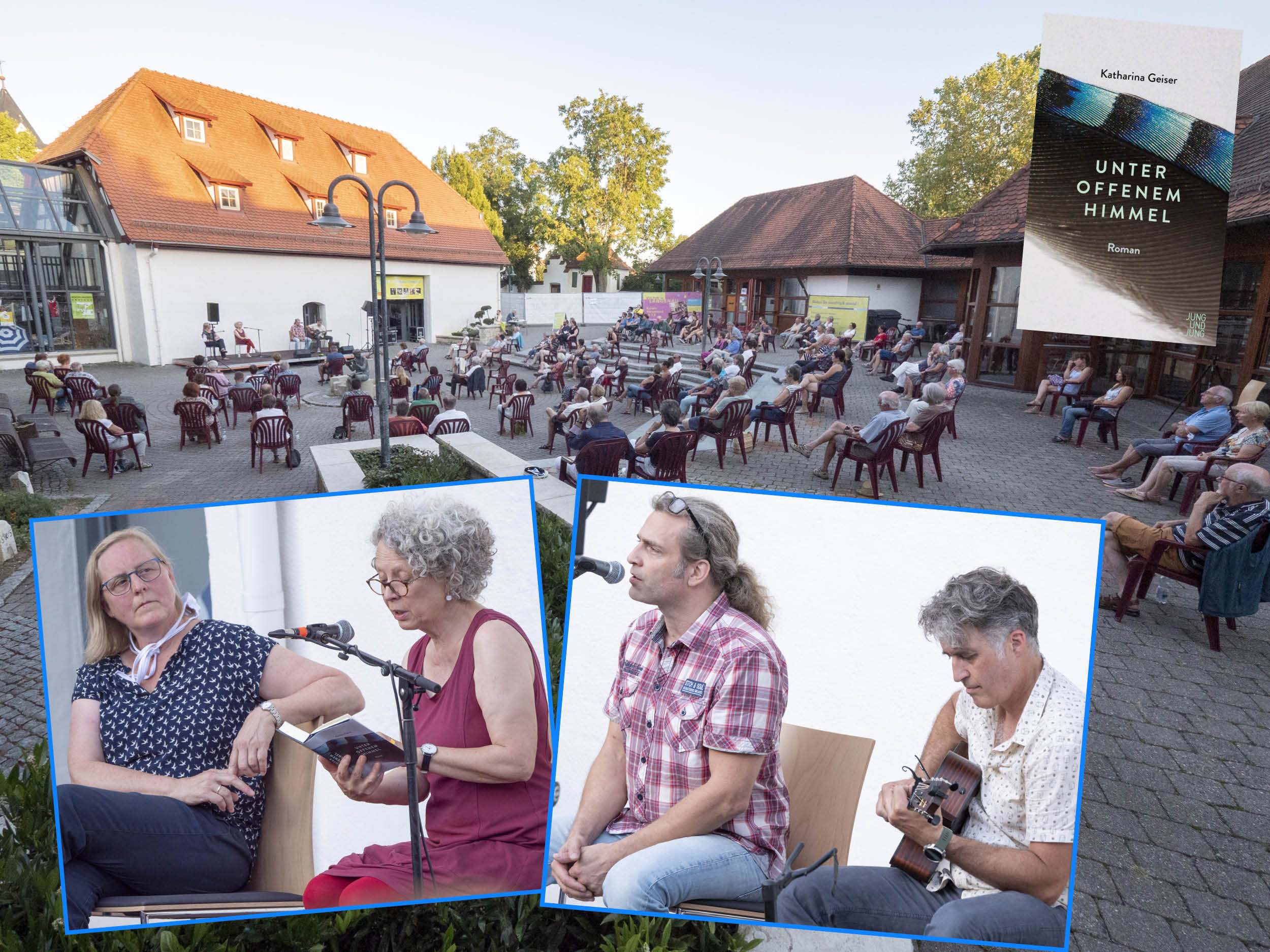 Wieder ein geglückter Abend auf dem Pfleghof – bereits zum 10. Mal hieß es Kultur trotz(t) Abstand – und ein gelungenes Wagnis Gitarre und Gesang mit der Vorstellung von Katharina Geisers neuem Roman zu verbinden. Bezeichnend für die Lesung im Freien ist der Titel des Buches „Unter offenem Himmel“. Die gekonnte Moderation des Abends von Angelika Mahr und die von der Autorin klug ausgewählten „Appetithappen“ aus dem Roman, verführten zum Weiterlesen. Man wollte einfach mehr erfahren von Klara und ihrer Urgroßmutter Elise, zwei eigenwilligen Frauen und deren wechselvollem Leben. Die Überraschung des Abends war aber das lokale Duo Daniel Rosch und Martin Jabs, die die Lieder des amerikanischen Songwriters Shawn Mullins mit sehr viel Einfühlungsvermögen auf die Bühne brachten.