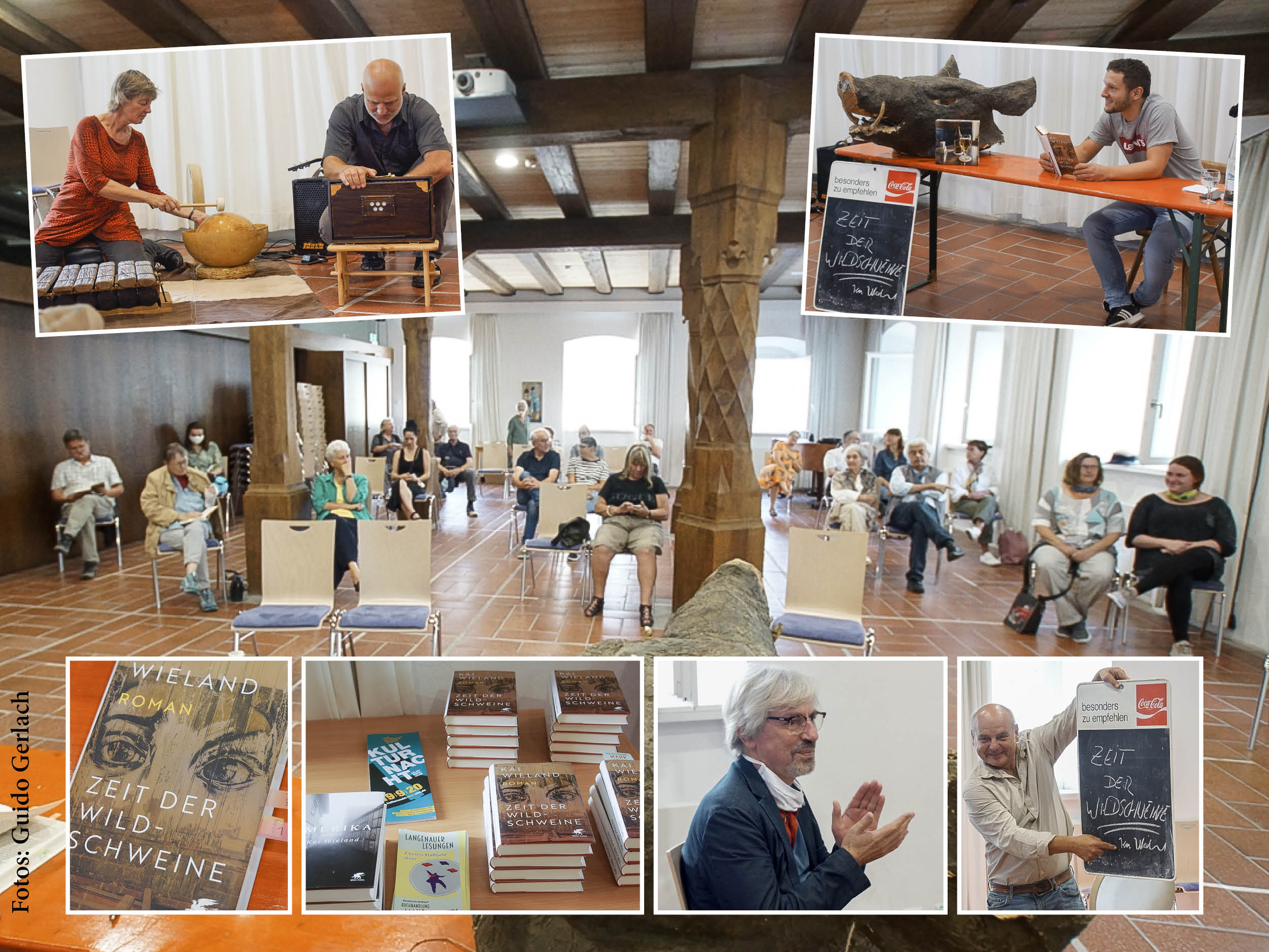Eine Lesung im Haus des Kunstvereins Ulm ist immer etwas Besonderes. So war Kai Wieland bei der Vorstellung seines neuen Romans „Zeit der Wildschweine“ sichtlich überrascht: Der Kopf eines Keilers aus Pappmaché thronte auf dem Tisch, der für die Lesung vorbereitet war.