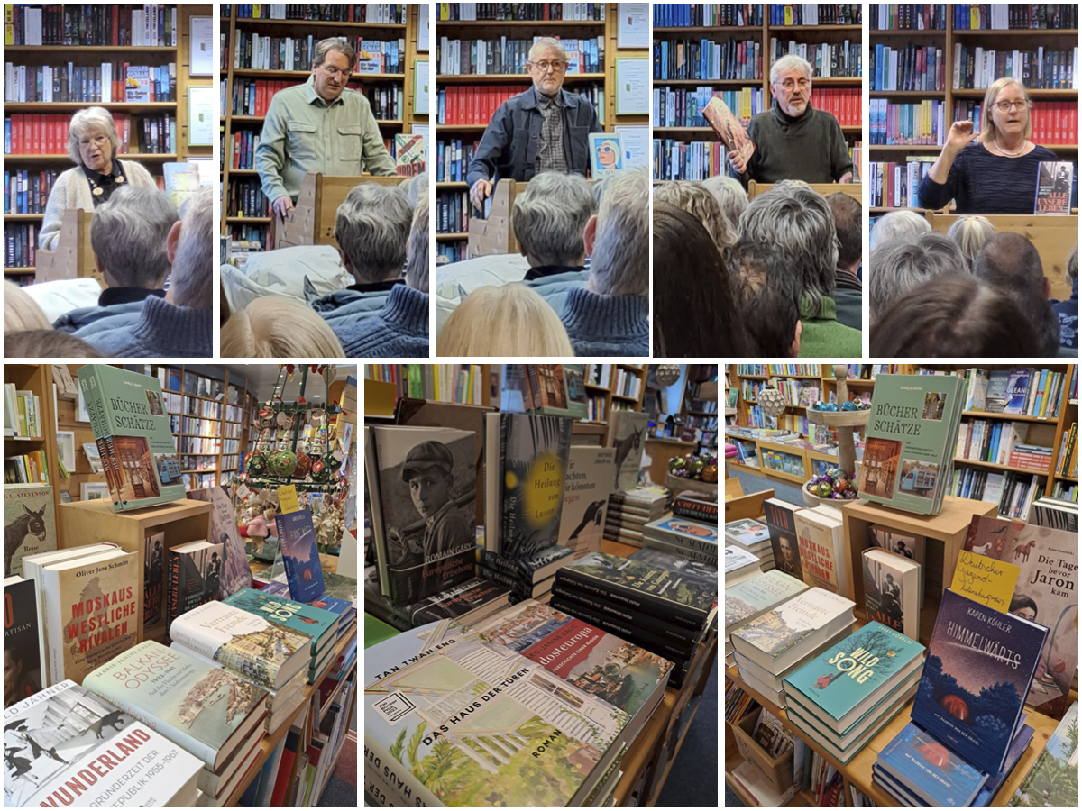 Ja, die Liebe zu Büchern, die Sucht nach Geschichten, ist immer wieder ansteckend. Unsere Besucher, sowohl um 11 Uhr als auch um 14 Uhr, sind mit gut gefüllten Taschen in den Sonntagnachmittag „entschwebt“. Ich freue mich heute schon auf unser 56.Quartett im Herbst, ebenfalls an einem Sonntag und ich will noch nicht verraten, wer dann mit uns auf dem Podest sitzen wird.