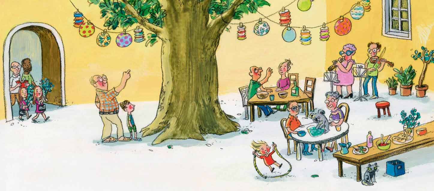 Gut, dass sich der ehemalige Kinderbuchverleger ganz auf das Schreiben von Büchern konzentriert, macht er doch damit so viele Kinder glücklich. Mit seinem neuen Buch hat er sich an ein schwierige Thema herangewagt und zeigt, dass die Demenz eine Familie ganz schön durcheinanderwirbeln kann. Schön, dass der Autor beim Erzählen nie seinen Humor verliert. In dieser Geschichte zieht Oma nach einem Unfall, notgedrungen für ein Jahr, bei Klaras Familie ein. Nicht nur der gebrochene Fuß sorgt dafür, dass sie zunehmend schusselig wird, und bald zeigt sich mit Gewissheit, sie leidet an Demenz. Viel Komisches passiert und die Ausfälle häufen sich und das liegt längst nicht mehr an ihrem Sturz im Keller. Doch auch Trauriges stellt sich ein, da Klaras Oma so vieles vergisst. Das Buch zeigt, dass ein würdevoller Umgang mit dementen Menschen möglich ist und man diese Oma am liebsten feste drücken möchte. Viel zum Gelingen des Kinderbuchs tragen die Illustrationen von Thomas Müller bei, der den Humor des Erzählers mit seinen Bildern aufnimmt.
