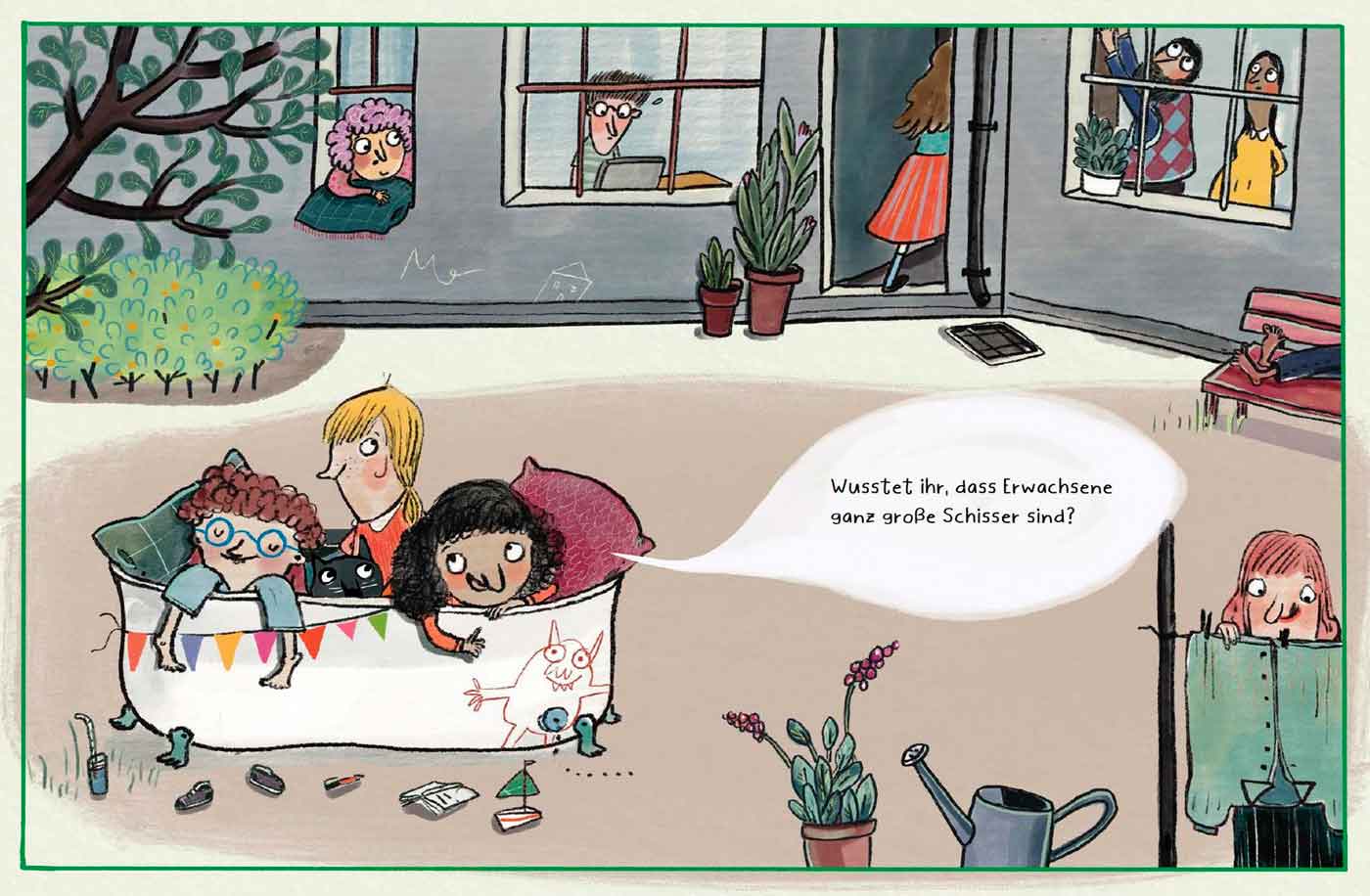 Nicht nur die Kleinen, auch die Großen haben Ängste – Angst vor Gewittern, vor schwarzen Katzen, oder flüchten auf einen Stuhl, wenn eine Maus durchs Zimmer rennt. Zitterbacke, Angstbeutel so nennen wir gerne die, die wir bei diesen Ängsten ertappen. Nele, Adam und Zaina wollen ergründen, warum auch die Großen manchmal Hasenfüße sind und so schmieden sie gemeinsam einen Plan, um die Angst zu vertreiben. Die Autorin Sybille Hein war hier auch als pfiffige Illustratorin tätig – und so ist ein gelungenes Anti-Angst-Bilderbuch entstanden, das mit viel Witz zum Lachen für Groß und Klein ansteckt. Denn Weglaufen hilft nicht, das macht die Angst nur umso größer!